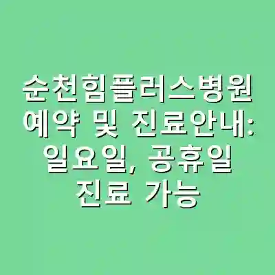순천힘플러스병원은 일요일과 공휴일에도 진료를 제공하며, 예약 홈페이지와 어플리케이션을 통해 쉽게 예약할 수 있습니다. 전문의 추천 시스템을 통해 더 나은 선택을 할 수 있으며, 안전하고 편리한 진료 서비스를 제공합니다.
