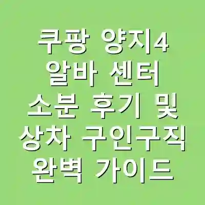 쿠팡 양지4 알바 센터 소분 후기 및 상차 구인구직 완벽 가이드