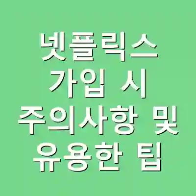 넷플릭스는 다양한 콘텐츠를 제공하는 훌륭한 플랫폼입니다. 그러나 가입 시 주의할 점과 유용한 팁을 알고 있으면 훨씬 더 만족스러운 경험을 할 수 있습니다. 이 글의 정보를 참고하여 넷플릭스를 더욱 효과적으로 활용해 보세요.