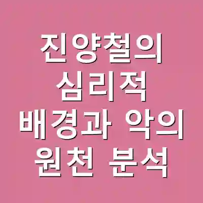 진양철의 복잡한 캐릭터는 심리적 배경과 사회적 요인들의 복합적인 결과입니다. 그의 행동을 분석하는 것은 단순한 캐릭터 연구를 넘어, 인간 존재의 본질과 사회의 어두운 면을 탐구하는 기회를 제공합니다. 독자들은 이 글을 통해 진양철의 심리적 배경을 이해하고, 나아가 그의 행동에 대한 통찰력을 얻을 수 있을 것입니다.